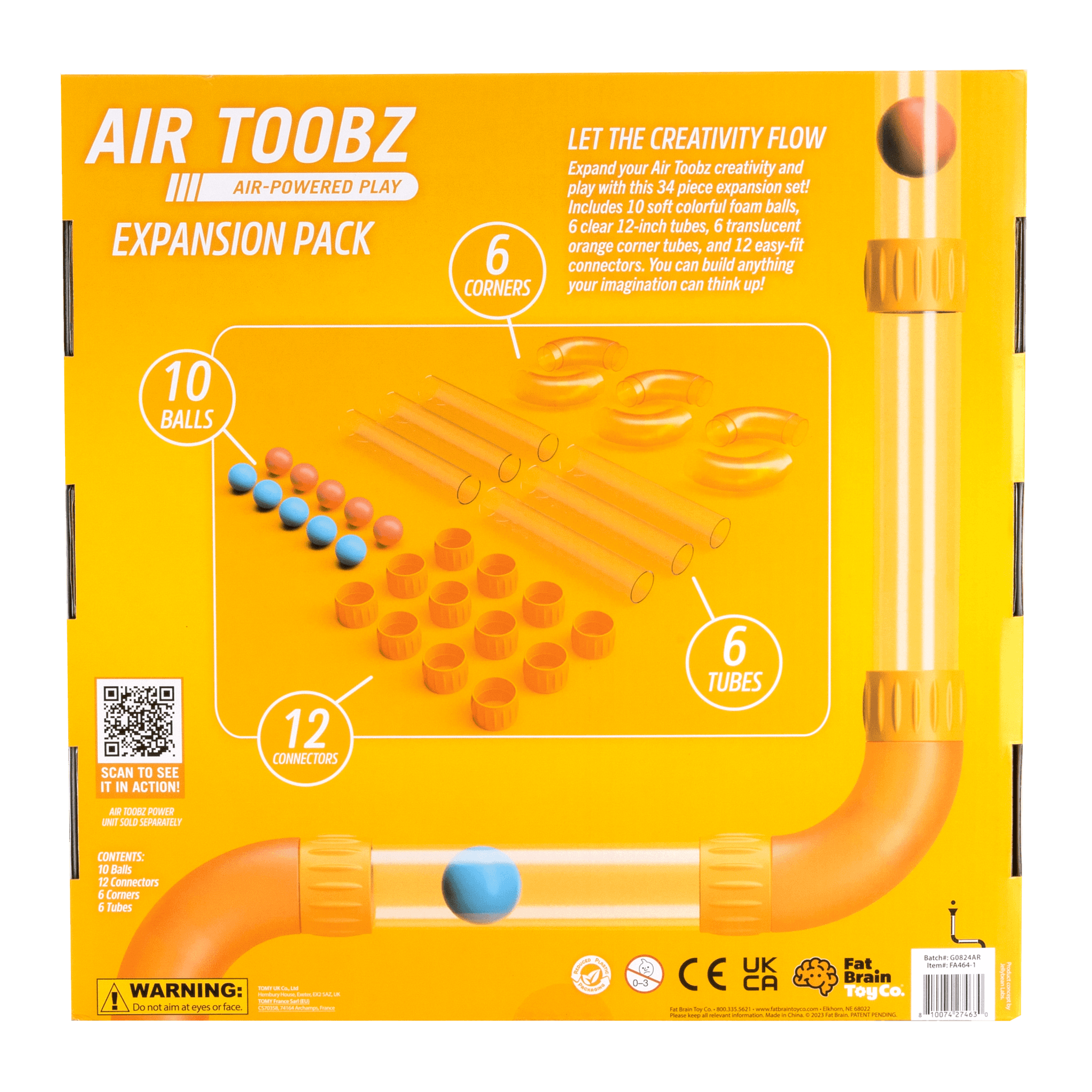 Vaše děti si už zamilovaly sadu s foukačem Air Toobz? S rozšiřující sadou Air Toobz Expansion Pack od Fat Brain Toys posunete zážitek ze hry na zcela novou úroveň. Tato sada je dokonalou odpovědí na přání po ještě delších dráhách, složitějších labyrintech a neomezené experimentální zábavě.